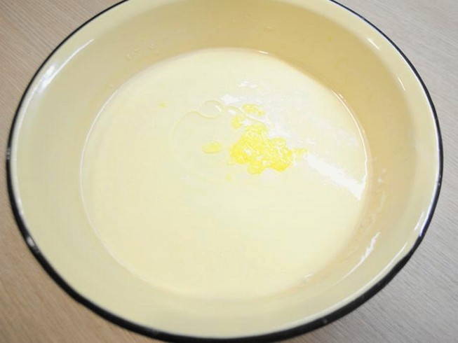Pandekager med huller i mælk og kogende vand
