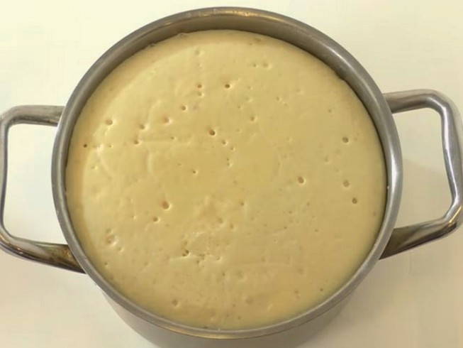 Opvarm kefiren lidt i mikrobølgeovnen eller i et vandbad. Tilsæt det direkte til den flydende dej, og tilsæt resten af sukkeret. Tilsæt det sigtede mel et par ad gangen og rør rundt. Bring dejen til en homogen konsistens af tyk creme fraiche. Dæk dejen med et håndklæde og varm i en time. Det skal vokse mindst to gange, afhængigt af gæren.