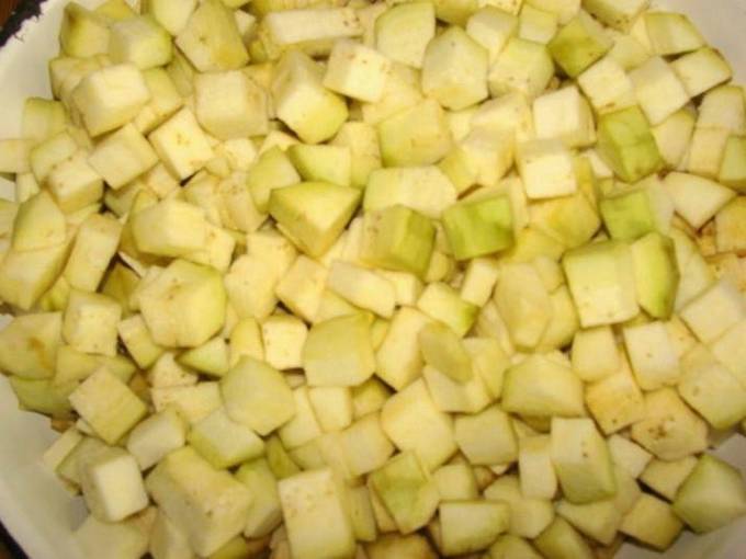 Peber fyldt med aubergine marineres i tomatsaft. På samme tid mister den ikke sin form og farve, grøntsagerne er duftende og pikante.