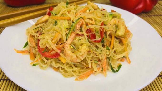 Funchoza med kylling, rejer og grøntsager er en enkel og velsmagende ret. Det er ret mættende og er perfekt til en familiemiddag. Pårørende vil helt sikkert sætte pris på din kulinariske indsats!