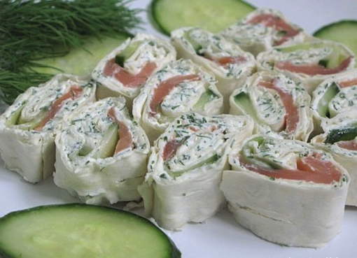 Lavash med laks, ostemasse og agurk