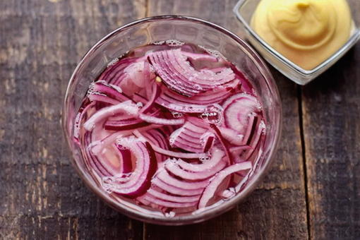 Korrekt tilberedt blæksprutte og parboiled ris er nøglen til en lækker klassisk salat med blæksprutter og ris. Til piquancy tilsættes syltede løg til salaten. Alle ingredienserne i salaten er godt kombineret med hinanden og skiller sig ikke ud med en lys smag, hvilket gør salaten let og mør. Denne opskrift er velegnet til et vinterbord, fordi den er tilberedt uden friske urter.