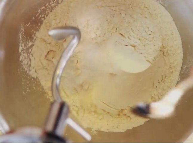 Das Tünchemehl auf ein Sieb sieben und in die Schüssel einer Küchenmaschine geben. Dann die im Rezept angegebene Menge Trockenhefe und Salz zum Mehl geben. Gießen Sie Pflanzenöl und etwas erwärmte Milch in eine Schüssel. Den Teig mit der Spezialdüse und bei mittlerer Geschwindigkeit kneten. Anschließend den Teig in eine separate Schüssel geben, mit einer Serviette abdecken und 30 Minuten (mehr geht möglich) ruhen lassen.