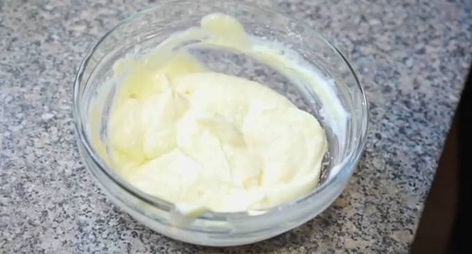 Butter in der Mikrowelle schmelzen, etwas abkühlen und über den Teig gießen. Jetzt muss der Teig gut sein und für 15–20 Minuten entweder von Hand oder mit Küchengeräten kneten. Den gekneteten Teig zu einem Brötchen rollen, mit Mehl bestäuben und mit einer Serviette bedeckt 1,5 Stunden erhitzen, damit er gut passt.