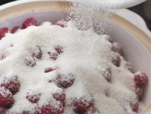 Nachdem die Marmelade vollständig abgekühlt ist, stellen Sie sie wieder auf den Herd und erhitzen Sie sie zum Kochen. Beim Erhitzen das Pektin separat mit dem feststehenden Zucker mischen und die Trockenmasse unter Rühren in die Marmelade geben, damit sich keine Klumpen bilden. Wenn die Mischung kocht, zwei Minuten kochen und vom Herd nehmen.
