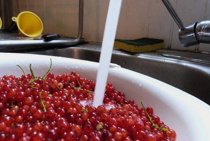 Wenn die rote Johannisbeere mit Zweigen gepflückt wurde, müssen sie nicht abgeschnitten werden. Wenn die Beerenmasse durch ein Sieb gemahlen wird, bleibt der gesamte Überschuss darin. Um rote Johannisbeeren für die Herstellung von Marmelade vorzubereiten, reicht es aus, sie gründlich mit fließendem Wasser zu spülen, vorzugsweise mehrmals. Werfen Sie die Beeren in ein Sieb, so dass die gesamte Flüssigkeit Glas ist.