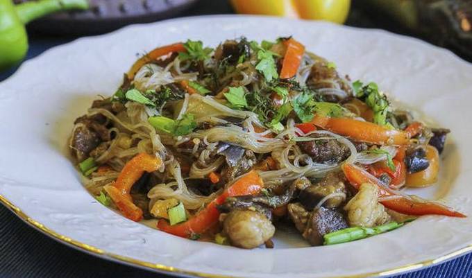 Funchose-Salat mit Gemüse und Fleisch wird sowohl am Esstisch als auch bei einem festlichen Abendessen gut aussehen und ist nicht schwer zuzubereiten. Dieses Gericht kann in einem verschlossenen Behälter im Kühlschrank bis zu 2 Tage aufbewahrt werden.