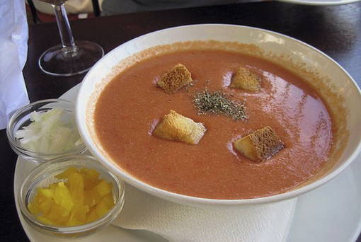 Gazpacho ist eine sehr einfache und gesunde Suppe, die Sie bei heißem Wetter erfrischen wird. Es ist sehr schnell aus sorgfältig geriebenem frischem Gemüse zubereitet; Sie können nach Belieben Gewürze und Zitronensaft hinzufügen. Eine solche Suppe kann sogar in das Diätmenü aufgenommen werden.
