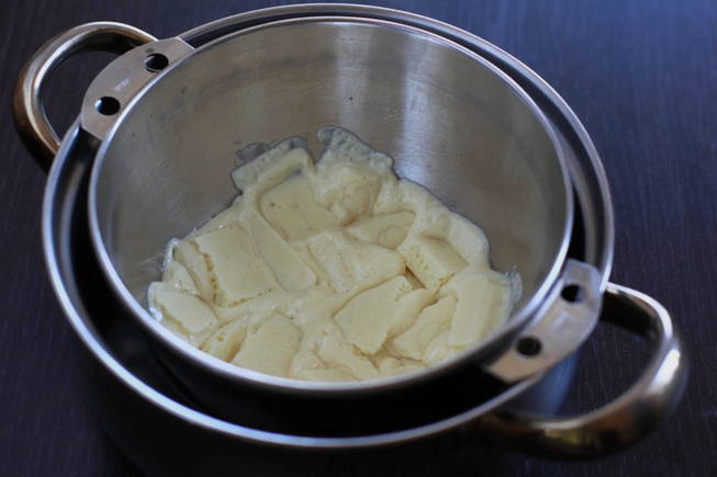 Für diejenigen, die es lieben, wenn die Osterkuchen mit süßem Zuckerguss verziert sind, empfehlen wir einen Überzug aus weißer Schokolade. Es hat einen milden, cremig-süßen Geschmack, der auf der Oberfläche von Backwaren gut aushärtet. Beim Schneiden ist diese Glasur nicht plastisch und bricht leicht. Wenn Sie jedoch eine weichere Konsistenz und Viskosität wünschen, können Sie dies während der cremigen Schmelzphase der Schokolade anpassen.