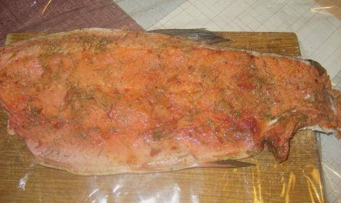 Rosa Lachs mit Kartoffeln im Ärmel im Ofen