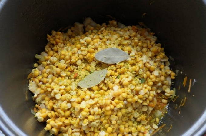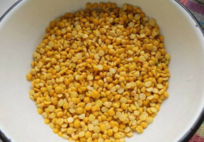 Im Allgemeinen eignen sich alle Erbsen für einen solchen Brei - zerkleinert, ganz, nicht nur gehackt. Wenn Sie einen ganzen verwenden, empfehlen wir, ihn vor dem Kochen einige Stunden einzuweichen - so gart er viel schneller. Zerkleinert und gehackt kann ohne Einweichen sofort verwendet werden - die Garzeit ist nicht so lang wie die des Ganzen. Die Erbsen in ein Sieb geben und unter fließendem Wasser gut abspülen. Spülen Sie, bis das Wasser vollständig sauber fließt und aufhört zu schäumen. Dies ist wichtig, denn es ist der gut gewaschene Rohstoff, der ohne Schaum gekocht wird und ein sauberes, weiches Püree ergibt.