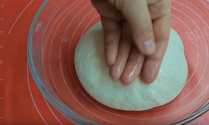 Wenn der Teig klebt, können Sie eine kleine Menge Mehl hinzufügen. Aus einem Teigstück mit unseren Händen oder einem Nudelholz eine Torte mit einem Durchmesser von ungefähr 25 Zentimetern formen. Die Dicke des Kuchens sollte etwa fünf Millimeter betragen. Die Käsefüllung auf die gegenüberliegenden Ränder des Kuchens geben.