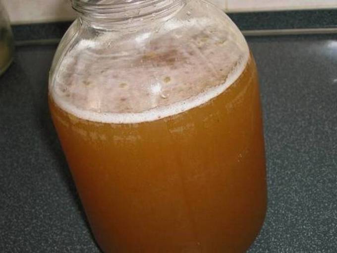 Wenn das Wasser abgekühlt ist, nehmen Sie ein Glas davon und gießen Sie die Hefe hinein. Dann gießen Sie diese Hefe zurück in die Pfanne. Mit Gaze bedecken und anderthalb Tage an einem kühlen, dunklen Ort aufbewahren. Dann filtern wir das Getränk und gießen es in die Dosen. In jedes Glas etwas Rosinen geben, mit Deckeln abdecken und zum Anklopfen in den Kühlschrank stellen.