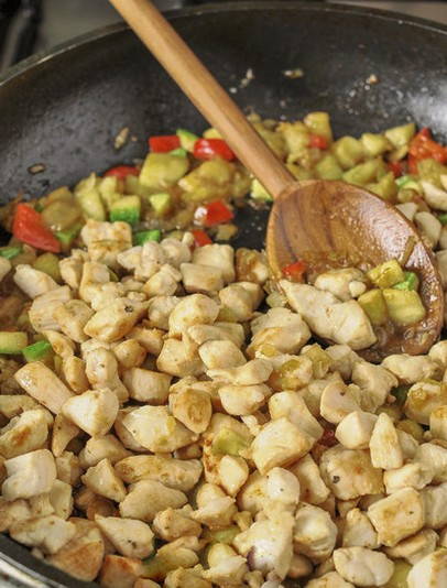 Zucchini gefüllt mit Hühnchen und Gemüse