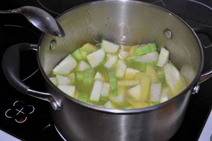 Appetitanregender Kürbiskaviar, gedünstet in Tomatenmark, erweist sich als unglaublich zart, mit einer weichen Textur und einem erstaunlichen Aroma. Ein echter Kinderschmaus! Und es ist so einfach zu Hause zu machen!
