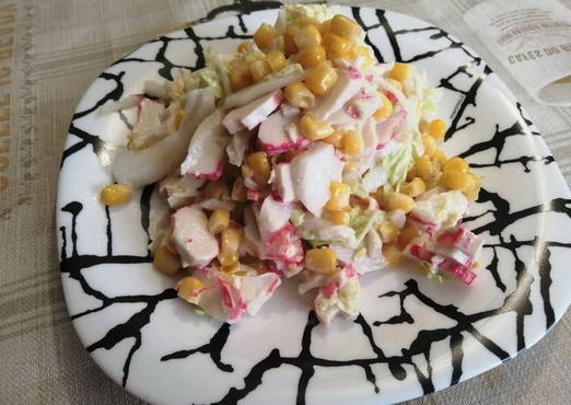 Salat mit Krabbenstäbchen, Kohl und Mais