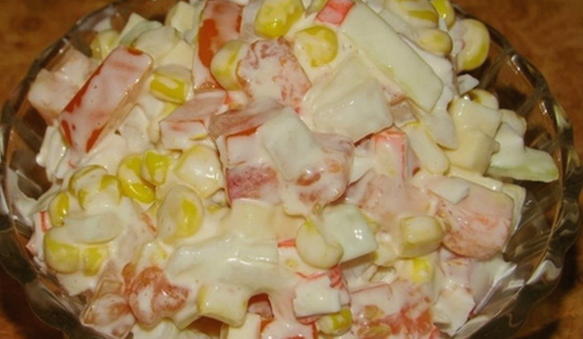 Salat mit Krabbenstäbchen und Mais