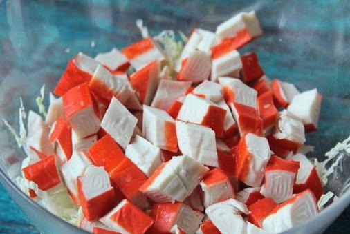 Für einen schnellen und leckeren Snack für Ihren Tisch können Sie Krabbensalat mit Chinakohl, Mais und Croutons servieren. Ein helles Gericht eignet sich auch für ein festliches Menü.