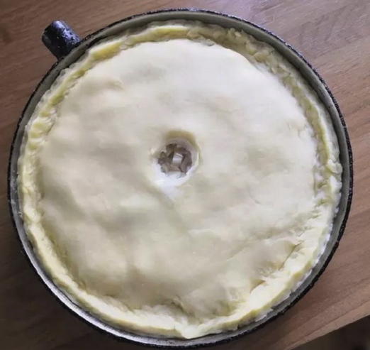 Bereiten Sie eine Pfanne vor und bestreichen Sie sie mit Pflanzenöl. Den Teig in 2 gleiche Teile teilen, zu einem 1 Zentimeter dicken Kreis ausrollen. Den Teig in die Pfanne geben, die Seiten formen, die Füllung gleichmäßig verteilen. Die zweite Teigscheibe ausrollen. Auf die Füllung legen. Die Teigränder gut zusammendrücken.