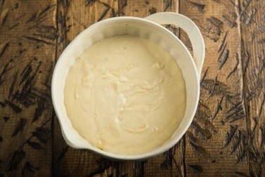 Den Teig 15-20 Minuten bei Raumtemperatur stehen lassen, damit der Grieß aufquillt. Nach Ablauf der Zeit Milch zum Teig geben, alle Zutaten nochmals gründlich vermischen und den Teig in eine mit Pflanzenöl eingefettete Form geben. Den Teig mit einem Silikonspatel nivellieren und das Manna in einem auf 200 Grad vorgeheizten Ofen 30-40 Minuten backen. Die Bereitschaft des Mannas überprüfen wir mit einem Spieß oder einem Zahnstocher.