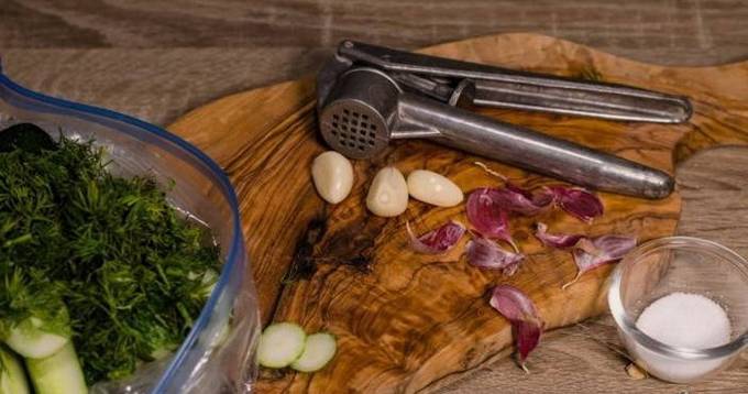 Wir empfehlen Ihnen, frische Gurken in kürzester Zeit in einer Tüte zu marinieren: Alle vorbereitenden Manipulationen dauern nicht länger als 15 Minuten und Sie können diese wunderbare Kreation Ihrer Stifte in 2-3 Stunden essen. Im Prinzip ist alles von gestern machbar, damit die Gurken nachts an einem kalten Ort liegen und sehr gut marinieren, aber auch morgens hast du noch Zeit sie zum Abendessen nach diesem einfachen Rezept einzulegen, das dich überraschen wird mit einem hervorragenden Ergebnis!