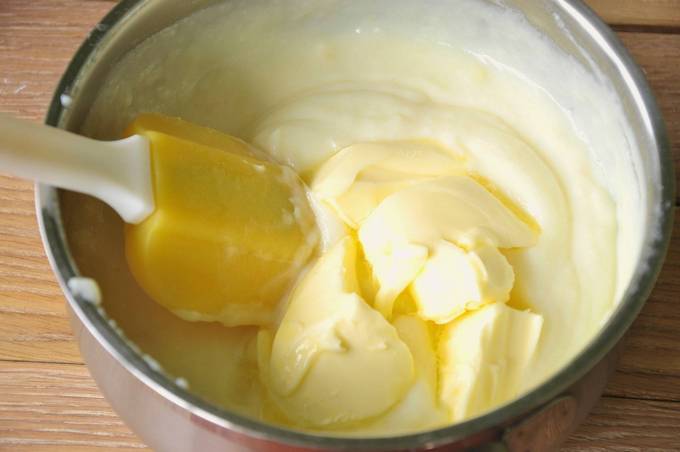 Honig mit Backpulver in einen Behälter geben und im Wasserbad erhitzen, bis die Masse zunimmt. Eier mit Zucker schlagen. Verbinden Sie beide Massen. Das Mehl sieben und mit einem Spatel vorsichtig umrühren. Den Teig vorsichtig in eine Form gießen und im auf 180 Grad vorgeheizten Ofen 40 Minuten backen. Vollständig abkühlen. Teilen Sie den Keks in Kuchen, indem Sie ihn der Länge nach mit einem scharfen Messer schneiden.