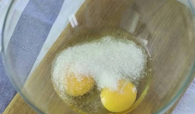 In einer großen Schüssel Eier, Kristallzucker und flüssigen Honig glatt rühren. Sie können dies mit einem Mixer bei mittlerer Geschwindigkeit oder von Hand mit einem Schneebesen tun. Mehl zusammen mit Soda in einen separaten Behälter sieben. Die Trockenmasse portionsweise in die Ei-Honig-Masse geben, den Teig nach und nach kneten. Der fertige Teig sollte von mittlerer Dicke sein und aus einem Löffel gießen. Je nach Beschaffenheit des Mehls benötigen Sie mehr oder weniger davon: Sobald die gewünschte Konsistenz erreicht ist, hören wir auf, Mehl zuzugeben.