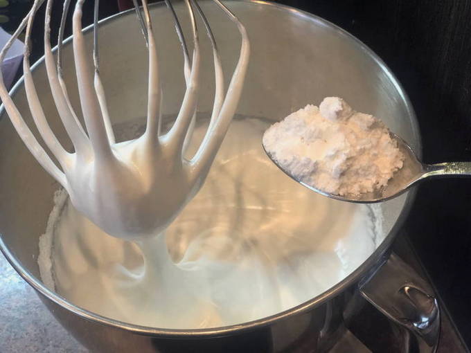 Trennen Sie das Eiweiß vom Eigelb. Im Durchschnitt wiegt ein Eiweiß (Kategorie C-1) 30-35 Gramm. Wenn Sie also keine Waage haben, sollten Sie etwa 5 Eier verwenden. Es ist notwendig, das Weiß sehr sorgfältig vom Eigelb zu trennen, da der kleinste Tropfen Fett, der im Protein ihres Eigelbs eingeschlossen ist, nicht zu einer dichten Masse geschlagen werden kann.