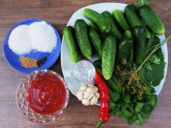 Ich schlage vor, leckere Gurken mit Chili-Ketchup und Senfkörnern zuzubereiten. Das Rezept ist ganz einfach. Sie brauchen nur Ihre Lust und Zuversicht – und alles wird gut! Die Vorspeise entpuppt sich als recht aromatisch mit ausgewogenem Geschmack und wird jeden ansprechen, der sie probiert.