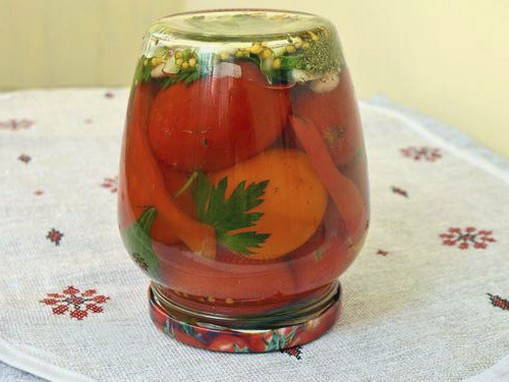 Die Hauskonservierung ist ein riesiges Feld der Fantasie und des Experimentierens, durch das Sie aus einer Kombination verschiedener Gewürze Ihren Lieblingsgeschmack erreichen können. Dieses Rezept wird vor allem Fans von Sellerie ansprechen, Tomaten in Kombination mit diesem würzigen Gewürz sind süß mit einem angenehmen Aroma.