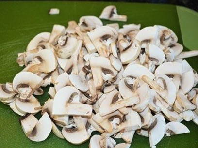 Gießen Sie einen Esslöffel Pflanzenöl in eine gut erhitzte Pfanne. Geben Sie gehackte Zwiebeln und Pilze hinein, braten Sie sie einige Minuten unter ständigem Rühren. Die Champignons lassen den Saft einlaufen und köcheln, bis die gesamte Flüssigkeit verdampft ist. Die fertige Mischung abkühlen lassen.
