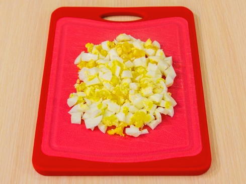 Ein nahrhafter und interessanter Salat aus Krabbenstäbchen, Mais, Eiern und Algen. Die Vorspeise wird Sie mit ihrer Würze und ihrem Aroma begeistern. Probieren Sie es für Ihr hausgemachtes Mittag- oder Abendessen.