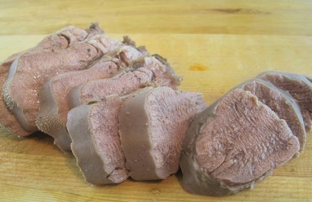 Normalerweise sind Fleischsalate sehr kalorienreich und daher kann sich nicht jeder leisten, sie zu probieren. Sie können Kalorien reduzieren, indem Sie eine magere Zunge in Kombination mit frischem Gemüse verwenden. Der Salat erweist sich als sehr lecker, zart und leicht.