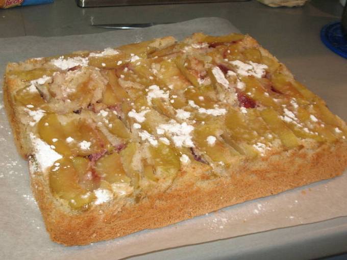 Schalte den Ofen ein. Damit Charlotte gut backen kann, muss die Temperatur mindestens 150 ° C betragen. Passen Sie die Temperatur entsprechend den Eigenschaften Ihres Ofens an. Backblech backen. Schmieren Sie es mit Pflanzenöl ein, damit die Charlotte nicht daran kleben bleibt. Die gehackten Äpfel auf ein gefettetes Backblech legen. Mit Stärke bestreuen, dann mit Zimt.