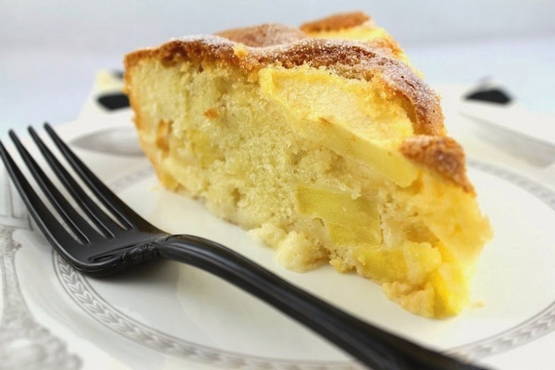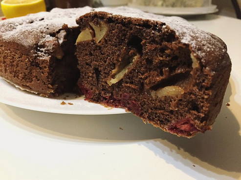 Charlotte mit Erdbeeren und Äpfeln