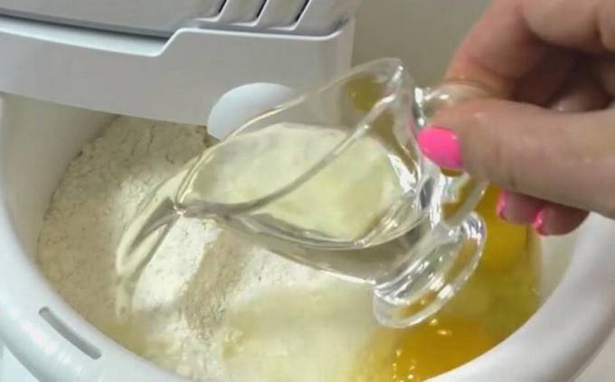 Milchteig ohne Hefe mit Eiern für Pizza im Ofen