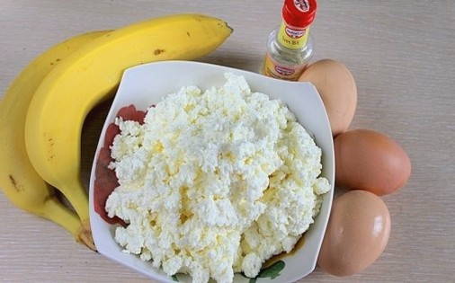 Trennen Sie das Eiweiß vom Eigelb. Wir schicken das Eigelb x in einen tiefen Behälter. Wir mischen sie mit Hüttenkäse sowie Bananen und Vanille. Alle Zutaten müssen gehackt werden, der Einfachheit halber ist es besser, dies mit einem Mixer zu tun, aber wenn er nicht da ist, können Sie eine normale Gabel verwenden.