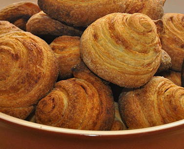 Zimtschnecken sind leichte und würzige Backwaren, die mit Tee serviert werden können. Sie benötigen fertiges Blätterteiggebäck und einige Gewürze.