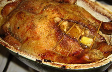 Ente mit getrockneten Aprikosen und Pflaumen im Ofen
