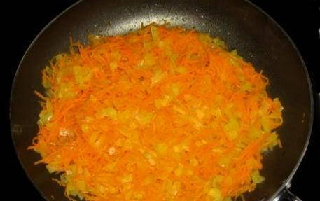 Gehackte Igel mit Reis und Tomatensauce in einem Topf