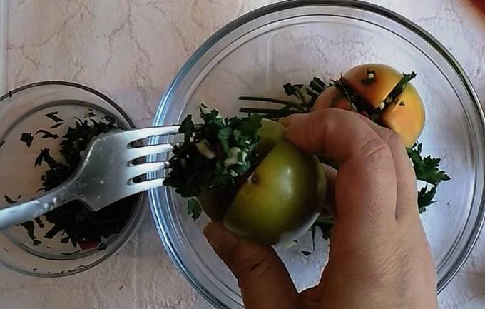 Wir bieten Ihnen ein Rezept für unglaublich leckere eingelegte Tomaten gefüllt mit Knoblauch und Kräutern. Tomaten, die nach unserem Rezept zubereitet werden, sind scharf und mäßig scharf. Übrigens eignen sie sich perfekt für einen festlichen und alltäglichen Tisch als Vorspeise zu Fleischgerichten.