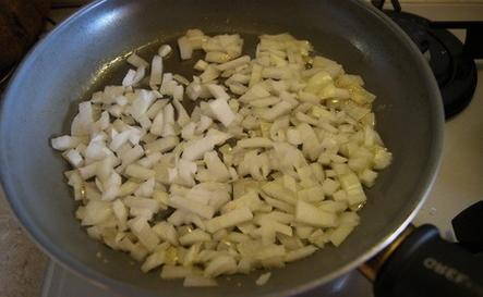 Wir waschen das Hähnchenfilet unter fließendem Wasser und geben es in einen Topf, füllen es mit Wasser und zünden es an. Zum Kochen bringen und kochen, bis sie weich sind. Dann nehmen wir das Filet auf einem Teller heraus und lassen es abkühlen. Dann schneiden wir es in kleine Würfel. Das Filet mit Champignons und Zwiebeln in eine Pfanne geben, mischen und mit Mehl bestäuben.