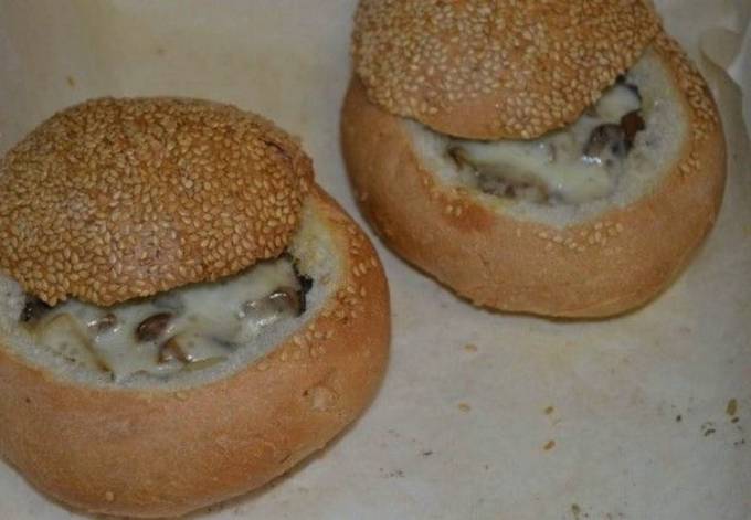 Za julienne koristimo klasične sastojke - gljive, vrhnje i sir. No, poslužujemo jelo ne u uobičajenim limenkama, već u lepinjama. Vrlo praktično - hrskava vruća lepinja odlično se slaže s kremastim julienneom. I vrlo estetski - kompozicija izgleda ukusno i nevjerojatno atraktivno.