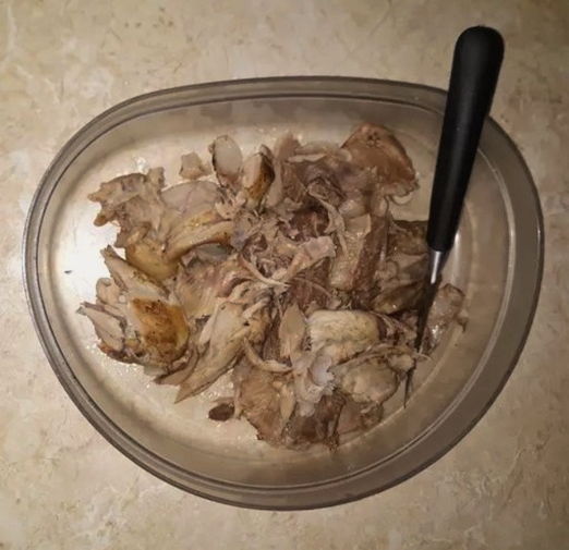 Mossuk meg a sertéscsülköt, a csirkét és a marhahúst, tegyük egy serpenyőbe, és öntsük fel vízzel úgy, hogy ellepje a húst. Hozzáadjuk a babérlevelet, a sót és a fekete borsot. Tegyük tűzre és forraljuk fel, távolítsuk el a habot, csökkentsük a hőt és fedő alatt pároljuk 6 órán át. Hűtsük le a főtt húst.