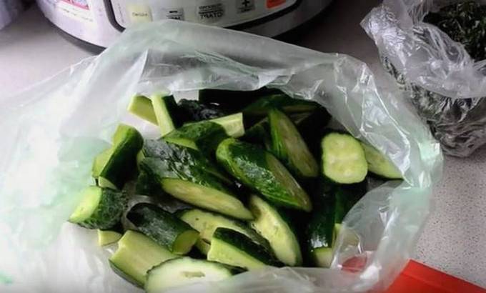 A fokhagymát meghámozzuk és apróra vágjuk. Kívánt esetben présen is át lehet engedni, ebben az esetben az uborka maximális aromáját és ízét adja. Adjunk hozzá fokhagymát az uborkához, szorosan kössük össze a zacskót és rázzuk össze, ezáltal keverjük össze az összes hozzávalót. Az uborkát 30 percre a hűtőszekrénybe küldjük.