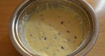 Keverjük össze a dagadt búzadarát a tojásos keverékkel, adjuk hozzá a szitált lisztet. Öntsük a mazsolát egy mély edénybe, öntsük fel forró vízzel és hagyjuk 5 percig. Ezután leeresztjük a vizet, és a mazsolát eldobjuk egy szűrőedényben. Miután a víz lefolyik róla, a tésztához küldjük, és az összes hozzávalót jól simára keverjük, hogy ne legyen csomó. A sütőedényt kenjük meg egy darab puha vajjal, és tegyük bele a tésztát, szilikon spatulával egyengessük a tetejét. A formát 180 fokra előmelegített sütőbe tesszük, és 30-40 percig sütjük a mannát.