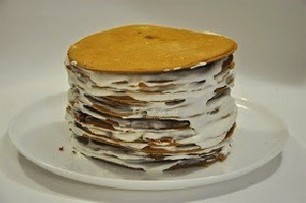 Most kezdjük el elkészíteni a krémes tölteléket. Keverjük össze a cukrot vízzel és pároljuk, amíg szirupot nem kapunk. A fehérjét kemény habbá verjük, majd fokozatosan öntsük bele a szirupot a keverő kikapcsolása nélkül. Adjunk hozzá tejfölt, és kanállal vagy spatulával óvatosan keverjük össze a tejszínt.