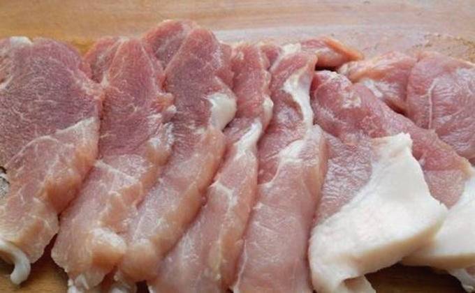 Ezután megszórjuk a húst sóval és borssal, és kalapáccsal felverjük. Vágjon egy darab szalonnát apró kockákra. Egy serpenyőben felforrósítunk 4 evőkanál növényi olajat, és megpirítjuk benne az apróra vágott szalonnát. Ebben a serpenyőben aranybarnára sütjük a hússzeleteket. A serpenyő lefedése nélkül megsütjük. Tegye át a sült húst egy tányérra.