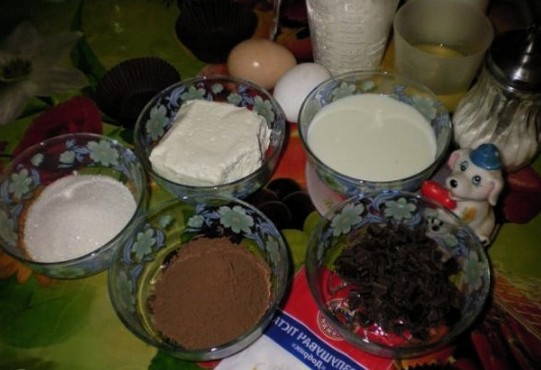 A dagasztáshoz használt edényben a tojásokat és a cukrot habverővel felverjük. Ezután adjuk hozzá a szükséges mennyiségű tejet és növényi olajat, és keverjük össze. Ezután öntsük a lisztet, szitán, szitán, keverjük össze sütőporral és sóval. A tésztához adjunk hozzá kakaóport és apróra vágott étcsokoládét.