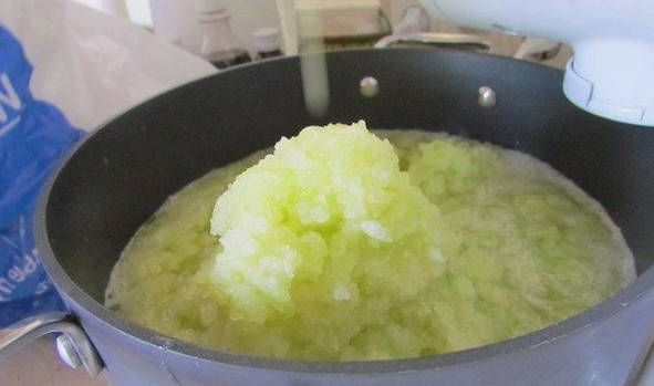 Aggiungere il pepe tritato, il concentrato di pomodoro, l'olio vegetale, il sale e lo zucchero nella padella delle zucchine. Amalgamare bene tutti gli ingredienti e mettere la padella sul fuoco. Portare la massa a bollore, abbassare la fiamma e cuocere per circa un'ora, ricordandosi di mescolare continuamente.
